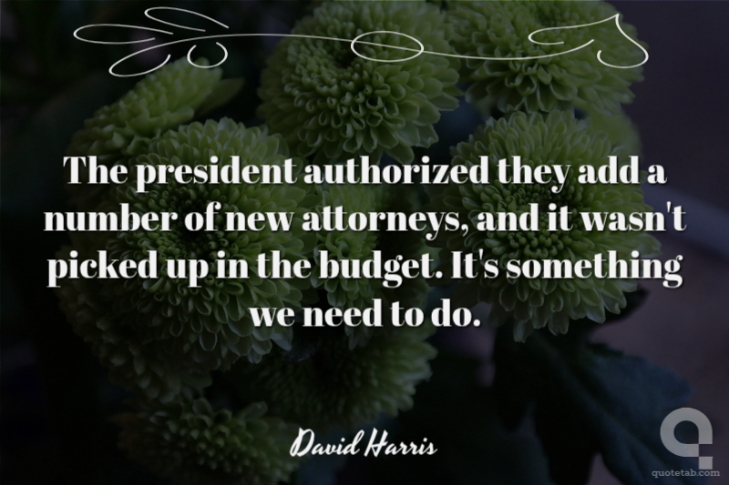 The president authorized they add a number of new attorneys, and it wasn't picked up in the budget. It's something we need to do.