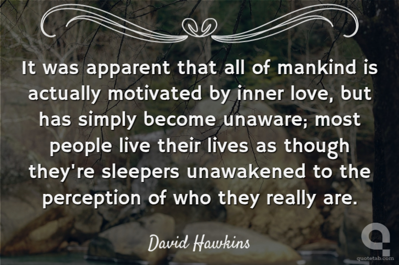 It was apparent that all of mankind is actually motivated by inner love, but has simply become unaware; most people live their lives as though they're sleepers unawakened to the perception of who they really are.