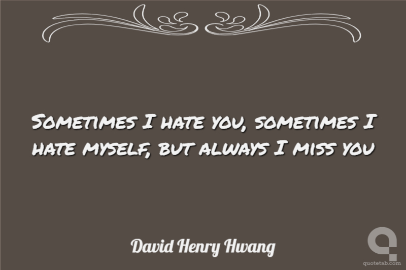 Sometimes I hate you, sometimes I hate myself, but always I miss you