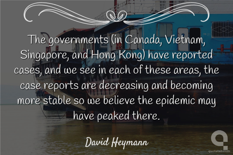 The governments (in Canada, Vietnam, Singapore, and Hong Kong) have reported cases, and we see in each of these areas, the case reports are decreasing and becoming more stable so we believe the epidemic may have peaked there.