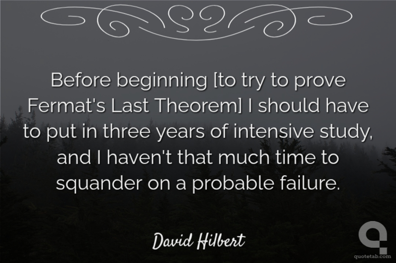 Before beginning [to try to prove Fermat's Last Theorem] I should have to put in three years of intensive study, and I haven't that much time to squander on a probable failure.
