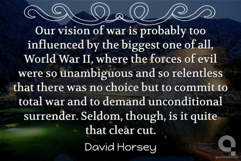 Our vision of war is probably too influenced by the biggest one of all, World War II, where the forces of evil were so unambiguous and so relentless that there was no choice but to commit to total war and to demand unconditional surrender. Seldom, though, is it quite that clear cut.
