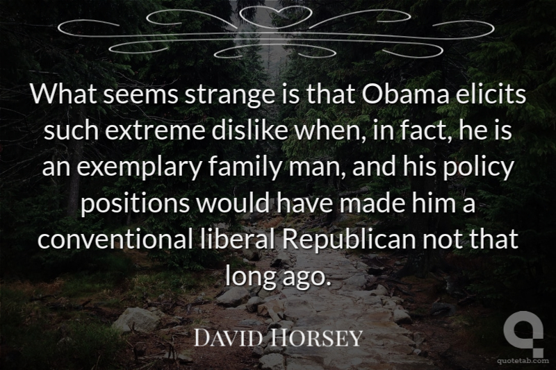 What seems strange is that Obama elicits such extreme dislike when, in fact, he is an exemplary family man, and his policy positions would have made him a conventional liberal Republican not that long ago.