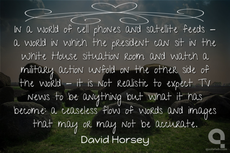In a world of cell phones and satellite feeds - a world in which the president can sit in the White House situation room and watch a military action unfold on the other side of the world - it is not realistic to expect TV news to be anything but what it has become: a ceaseless flow of words and images that may or may not be accurate.