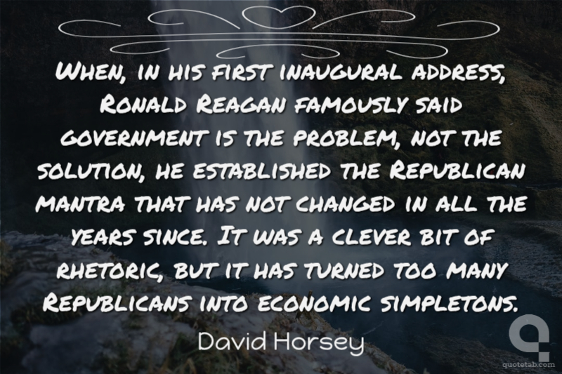When, in his first inaugural address, Ronald Reagan famously said government is the problem, not the solution, he established the Republican mantra that has not changed in all the years since. It was a clever bit of rhetoric, but it has turned too many Republicans into economic simpletons.