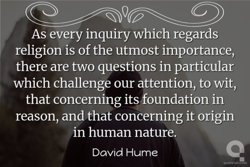 As every inquiry which regards religion is of the utmost importance, there are two questions in particular which challenge our attention, to wit, that concerning its foundation in reason, and that concerning it origin in human nature.