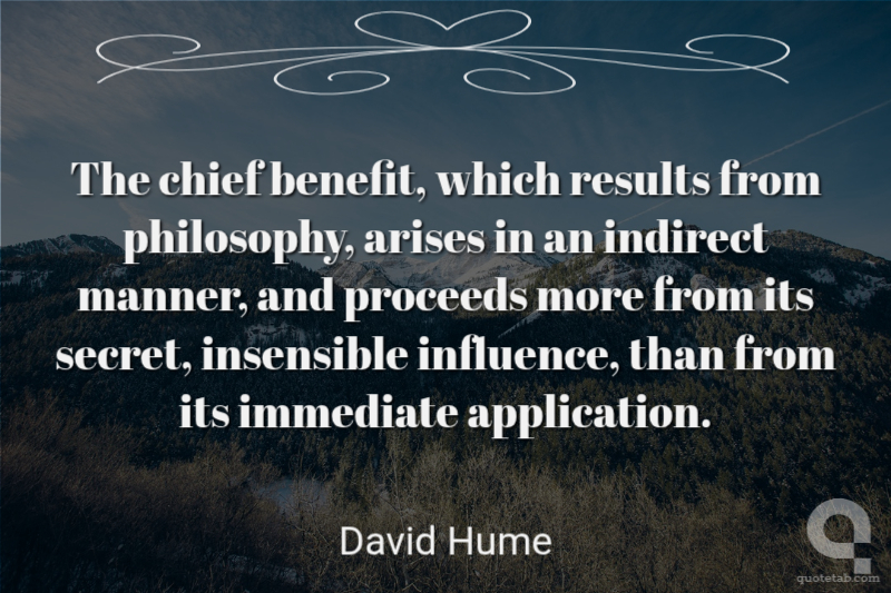 The chief benefit, which results from philosophy, arises in an indirect manner, and proceeds more from its secret, insensible influence, than from its immediate application.