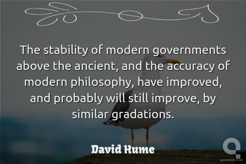 The stability of modern governments above the ancient, and the accuracy of modern philosophy, have improved, and probably will still improve, by similar gradations.