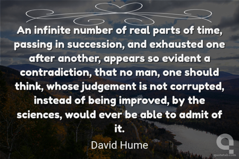 An infinite number of real parts of time, passing in succession, and exhausted one after another, appears so evident a contradiction, that no man, one should think, whose judgement is not corrupted, instead of being improved, by the sciences, would ever be able to admit of it.