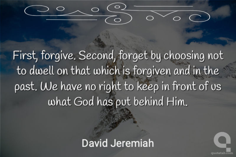 First, forgive. Second, forget by choosing not to dwell on that which is forgiven and in the past. We have no right to keep in front of us what God has put behind Him.