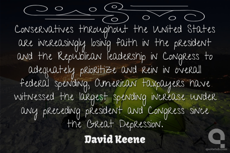 Conservatives throughout the United States are increasingly losing faith in the president and the Republican leadership in Congress to adequately prioritize and rein in overall federal spending, American taxpayers have witnessed the largest spending increase under any preceding president and Congress since the Great Depression.
