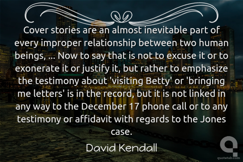 Cover stories are an almost inevitable part of every improper relationship between two human beings, ... Now to say that is not to excuse it or to exonerate it or justify it, but rather to emphasize the testimony about 'visiting Betty' or 'bringing me letters' is in the record, but it is not linked in any way to the December 17 phone call or to any testimony or affidavit with regards to the Jones case.