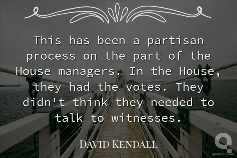 This has been a partisan process on the part of the House managers. In the House, they had the votes. They didn't think they needed to talk to witnesses.
