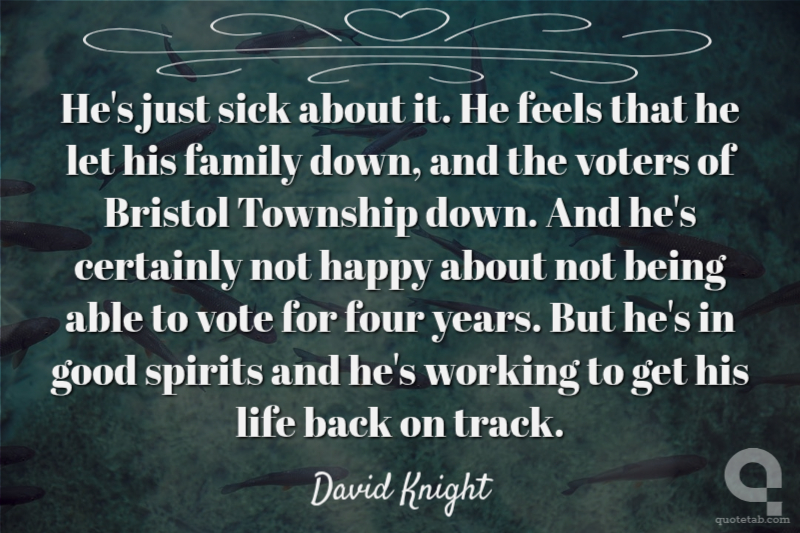 He's just sick about it. He feels that he let his family down, and the voters of Bristol Township down. And he's certainly not happy about not being able to vote for four years. But he's in good spirits and he's working to get his life back on track.