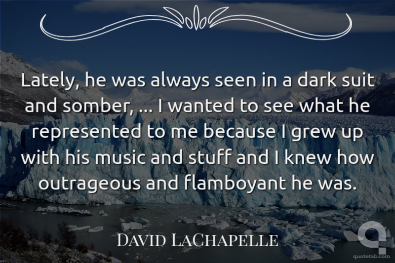 Lately, he was always seen in a dark suit and somber, ... I wanted to see what he represented to me because I grew up with his music and stuff and I knew how outrageous and flamboyant he was.