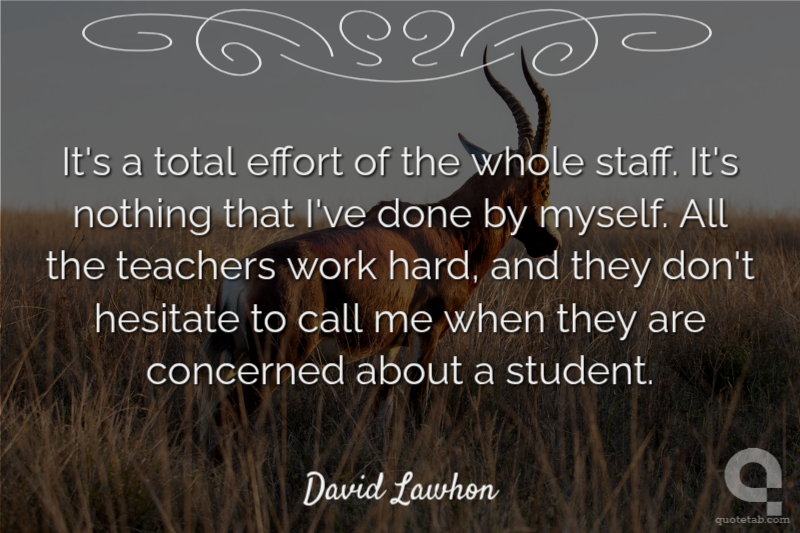 It's a total effort of the whole staff. It's nothing that I've done by myself. All the teachers work hard, and they don't hesitate to call me when they are concerned about a student.
