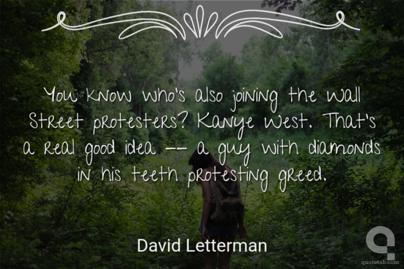 You know who's also joining the Wall Street protesters? Kanye West. That's a real good idea -- a guy with diamonds in his teeth protesting greed.