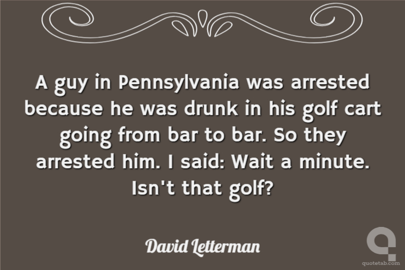 A guy in Pennsylvania was arrested because he was drunk in his golf cart going from bar to bar. So they arrested him. I said: Wait a minute. Isn't that golf?