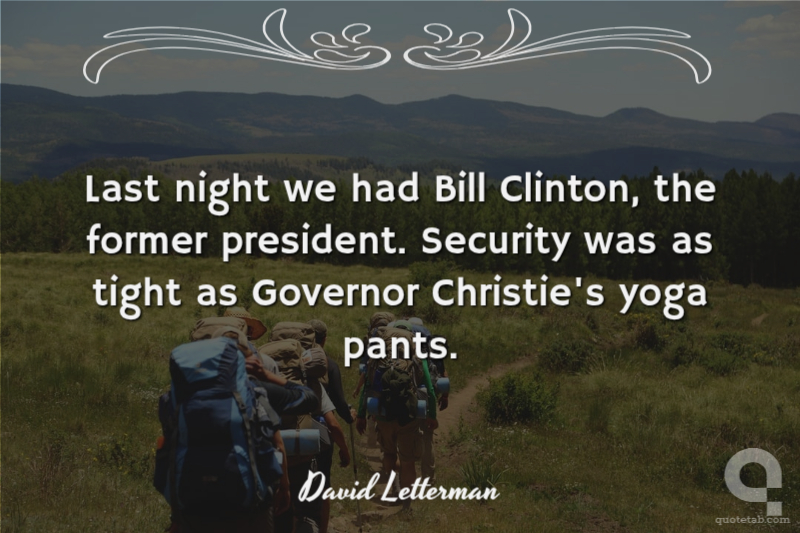 Last night we had Bill Clinton, the former president. Security was as tight as Governor Christie's yoga pants.