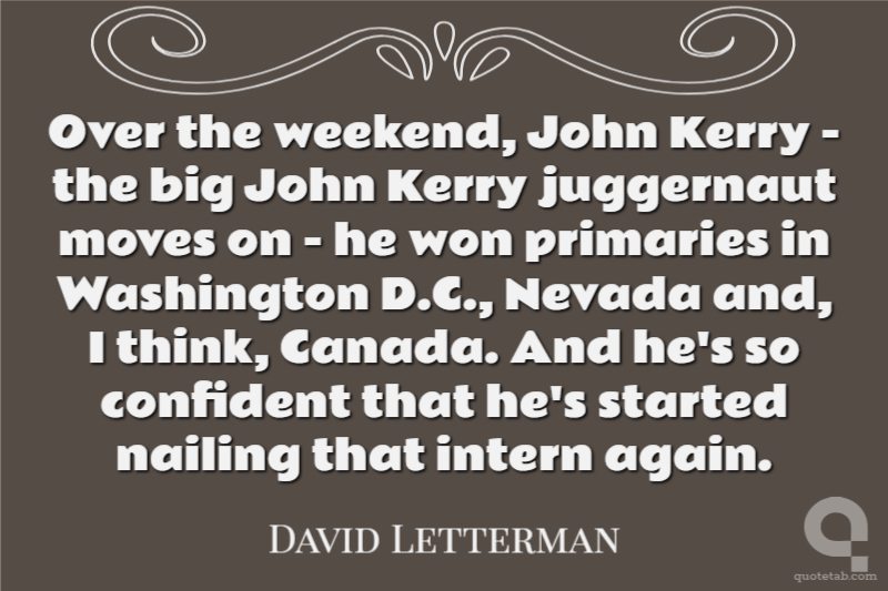 Over the weekend, John Kerry - the big John Kerry juggernaut moves on - he won primaries in Washington D.C., Nevada and, I think, Canada. And he's so confident that he's started nailing that intern again.