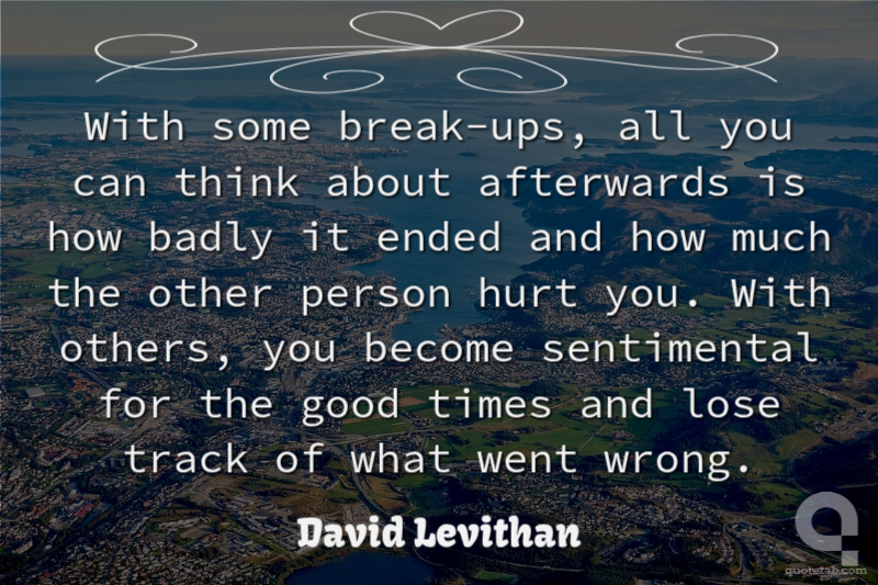 With some break-ups, all you can think about afterwards is how badly it ended and how much the other person hurt you. With others, you become sentimental for the good times and lose track of what went wrong.