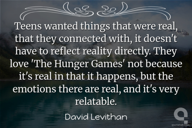 Teens wanted things that were real, that they connected with, it doesn't have to reflect reality directly. They love 'The Hunger Games' not because it's real in that it happens, but the emotions there are real, and it's very relatable.
