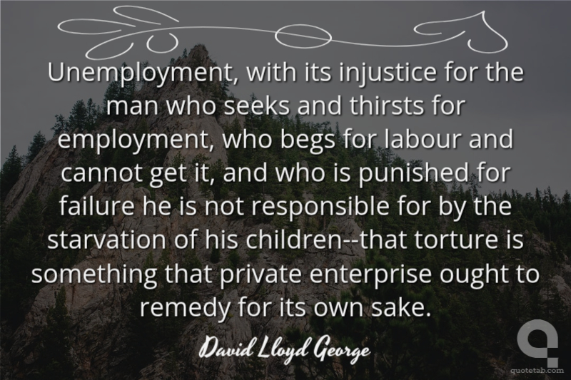 Unemployment, with its injustice for the man who seeks and thirsts for employment, who begs for labour and cannot get it, and who is punished for failure he is not responsible for by the starvation of his children--that torture is something that private enterprise ought to remedy for its own sake.