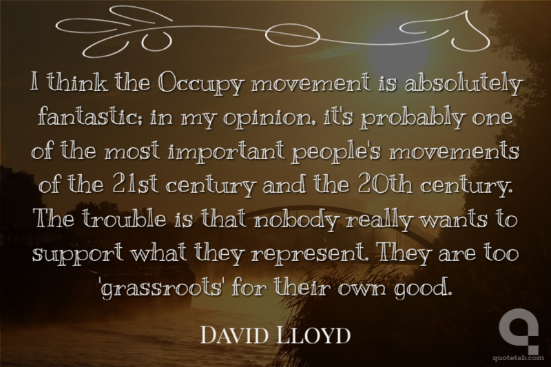 I think the Occupy movement is absolutely fantastic; in my opinion, it's probably one of the most important people's movements of the 21st century and the 20th century. The trouble is that nobody really wants to support what they represent. They are too 'grassroots' for their own good.