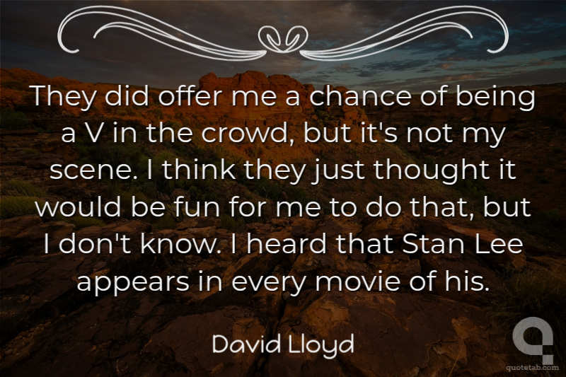 They did offer me a chance of being a V in the crowd, but it's not my scene. I think they just thought it would be fun for me to do that, but I don't know. I heard that Stan Lee appears in every movie of his.