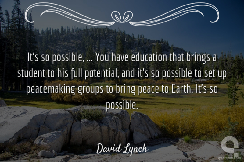 It's so possible, ... You have education that brings a student to his full potential, and it's so possible to set up peacemaking groups to bring peace to Earth. It's so possible.
