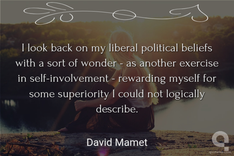 I look back on my liberal political beliefs with a sort of wonder - as another exercise in self-involvement - rewarding myself for some superiority I could not logically describe.