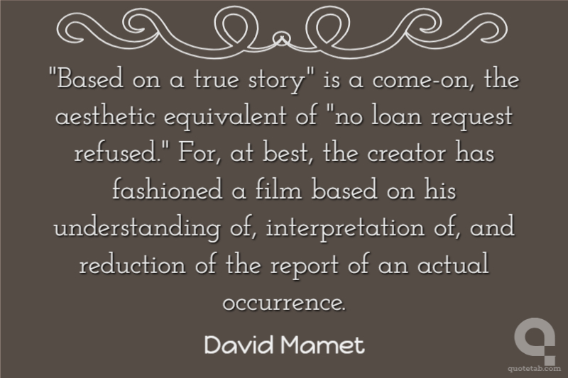 "Based on a true story" is a come-on, the aesthetic equivalent of "no loan request refused." For, at best, the creator has fashioned a film based on his understanding of, interpretation of, and reduction of the report of an actual occurrence.