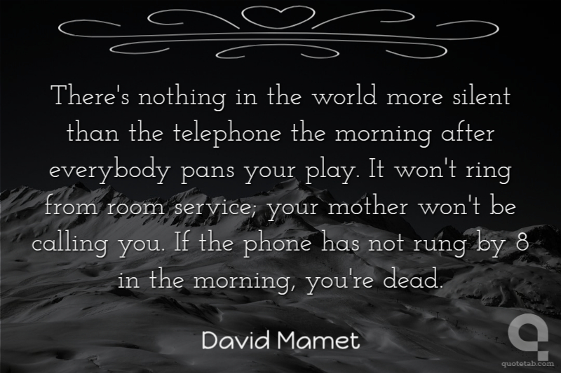 There's nothing in the world more silent than the telephone the morning after everybody pans your play. It won't ring from room service; your mother won't be calling you. If the phone has not rung by 8 in the morning, you're dead.