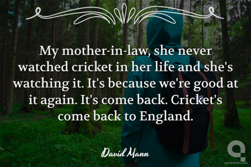 My mother-in-law, she never watched cricket in her life and she's watching it. It's because we're good at it again. It's come back. Cricket's come back to England.