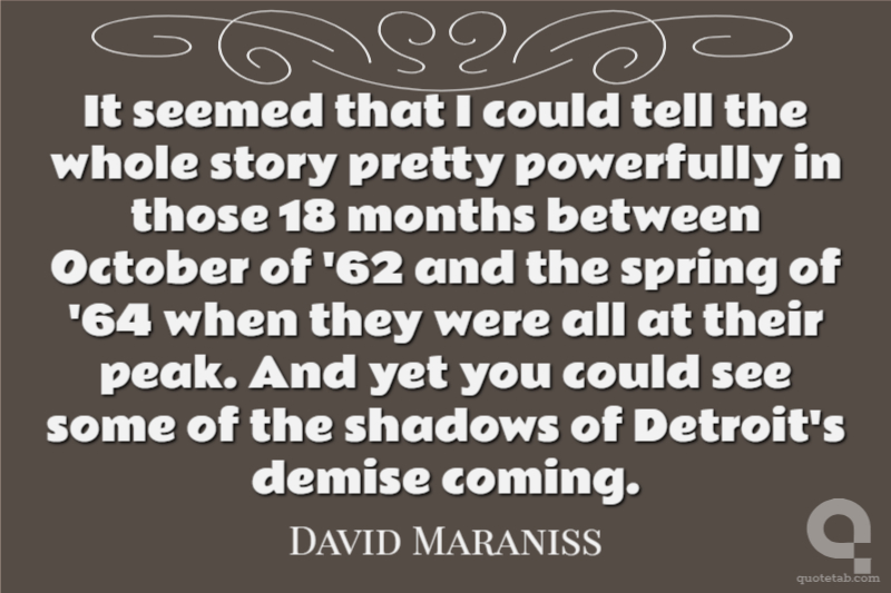 It seemed that I could tell the whole story pretty powerfully in those 18 months between October of '62 and the spring of '64 when they were all at their peak. And yet you could see some of the shadows of Detroit's demise coming.