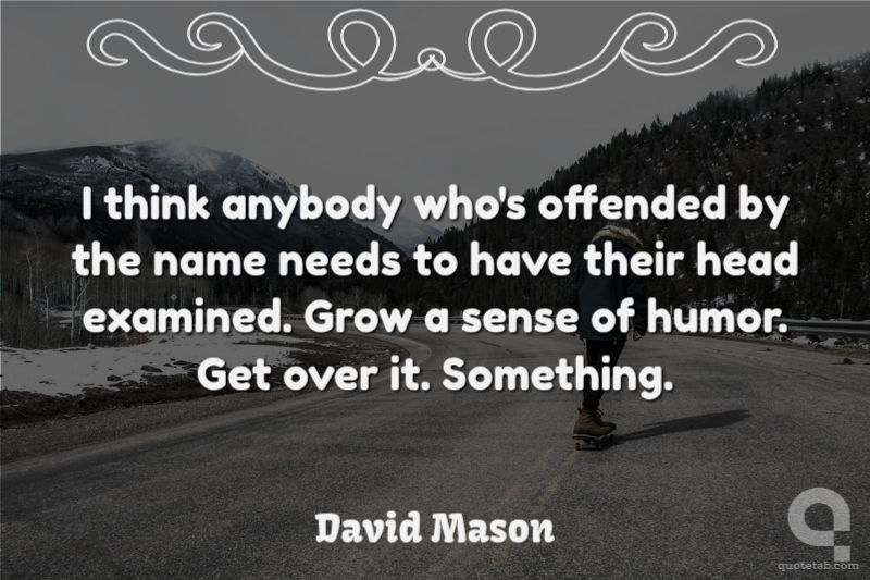 I think anybody who's offended by the name needs to have their head examined. Grow a sense of humor. Get over it. Something.