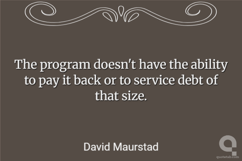 The program doesn't have the ability to pay it back or to service debt of that size.