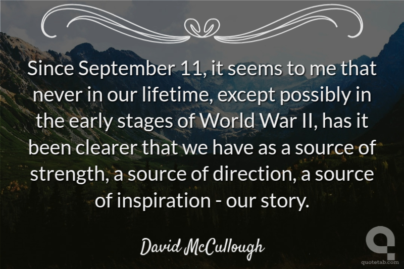 Since September 11, it seems to me that never in our lifetime, except possibly in the early stages of World War II, has it been clearer that we have as a source of strength, a source of direction, a source of inspiration - our story.