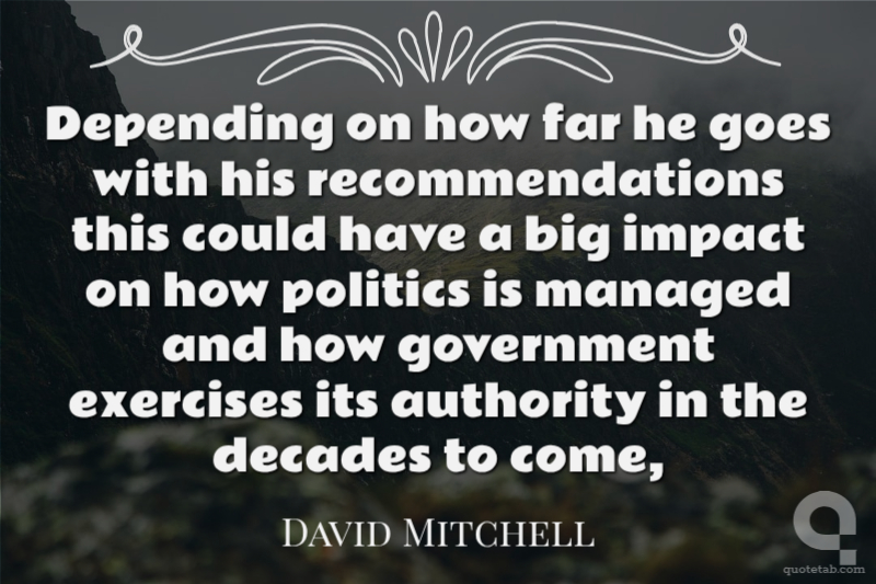 Depending on how far he goes with his recommendations this could have a big impact on how politics is managed and how government exercises its authority in the decades to come,