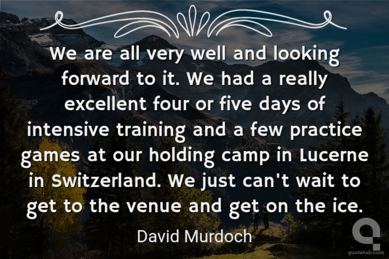 We are all very well and looking forward to it. We had a really excellent four or five days of intensive training and a few practice games at our holding camp in Lucerne in Switzerland. We just can't wait to get to the venue and get on the ice.