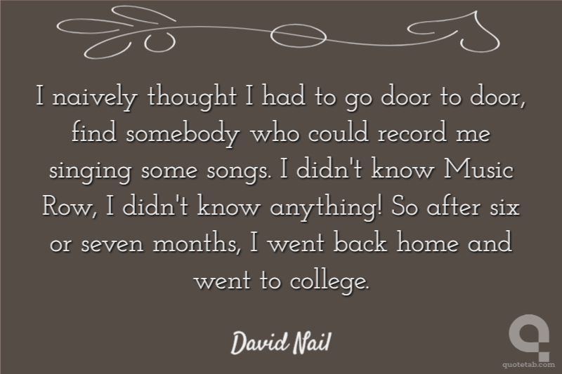I naively thought I had to go door to door, find somebody who could record me singing some songs. I didn't know Music Row, I didn't know anything! So after six or seven months, I went back home and went to college.