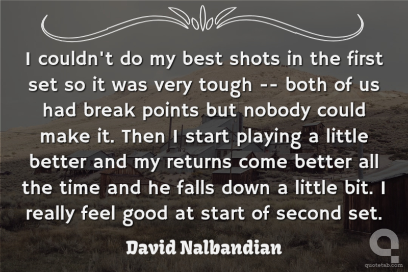 I couldn't do my best shots in the first set so it was very tough -- both of us had break points but nobody could make it. Then I start playing a little better and my returns come better all the time and he falls down a little bit. I really feel good at start of second set.