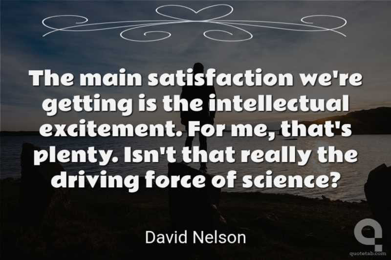 The main satisfaction we're getting is the intellectual excitement. For me, that's plenty. Isn't that really the driving force of science?