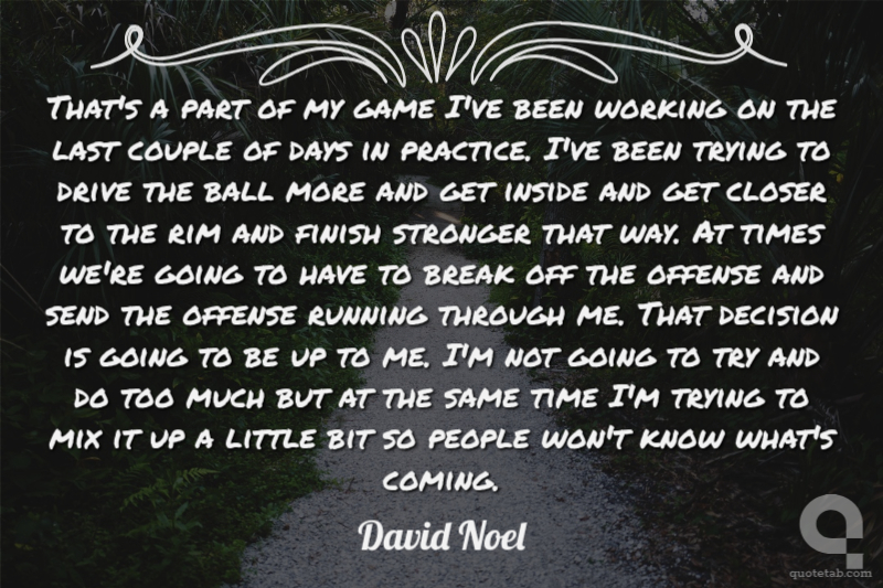 That's a part of my game I've been working on the last couple of days in practice. I've been trying to drive the ball more and get inside and get closer to the rim and finish stronger that way. At times we're going to have to break off the offense and send the offense running through me. That decision is going to be up to me. I'm not going to try and do too much but at the same time I'm trying to mix it up a little bit so people won't know what's coming.