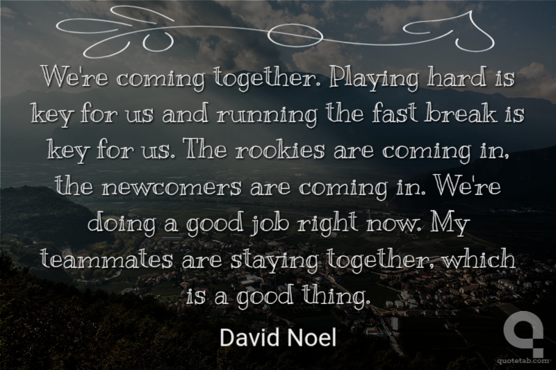 We're coming together. Playing hard is key for us and running the fast break is key for us. The rookies are coming in, the newcomers are coming in. We're doing a good job right now. My teammates are staying together, which is a good thing.