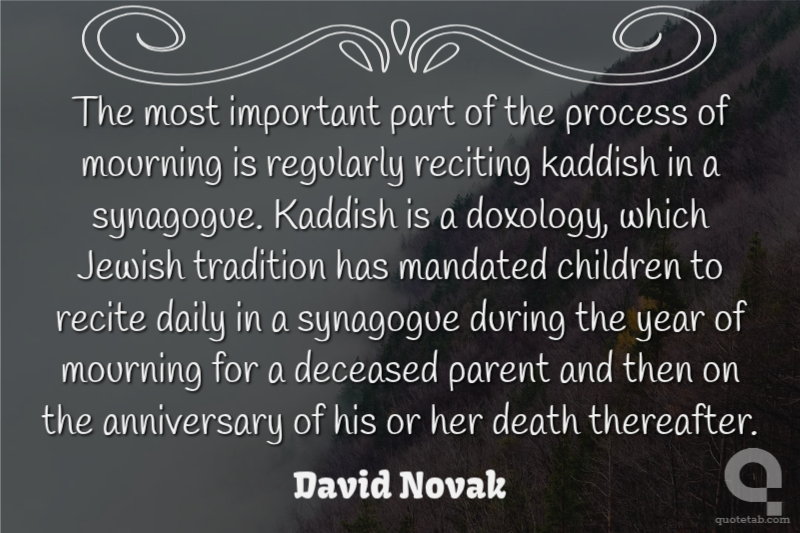 The most important part of the process of mourning is regularly reciting kaddish in a synagogue. Kaddish is a doxology, which Jewish tradition has mandated children to recite daily in a synagogue during the year of mourning for a deceased parent and then on the anniversary of his or her death thereafter.