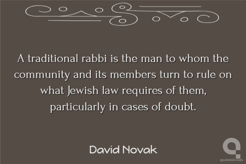 A traditional rabbi is the man to whom the community and its members turn to rule on what Jewish law requires of them, particularly in cases of doubt.