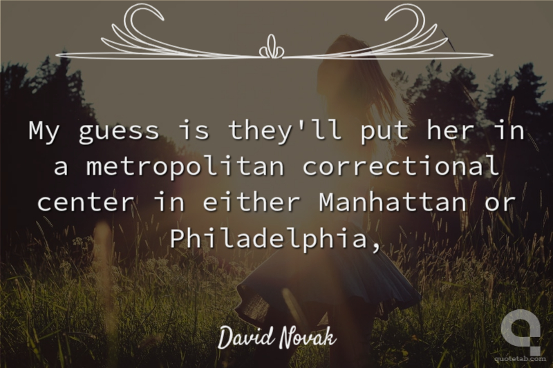 My guess is they'll put her in a metropolitan correctional center in either Manhattan or Philadelphia,