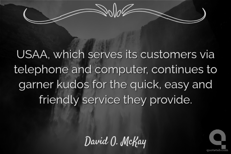 USAA, which serves its customers via telephone and computer, continues to garner kudos for the quick, easy and friendly service they provide.