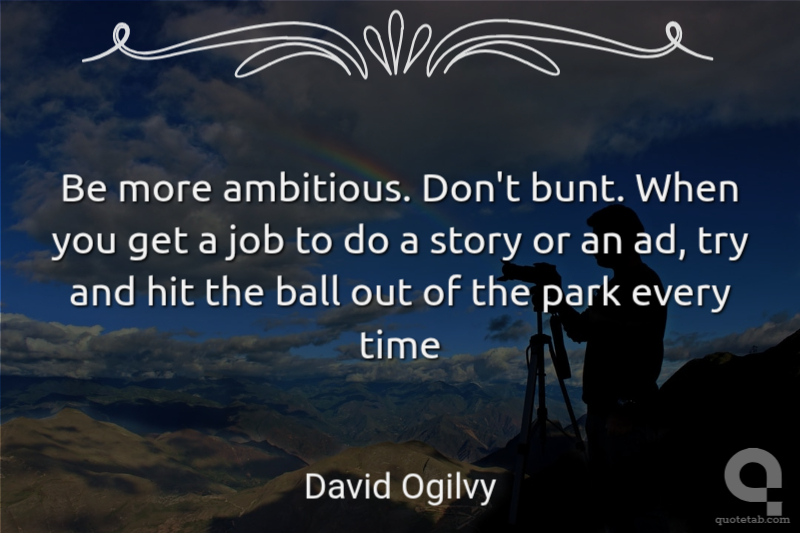 Be more ambitious. Don't bunt. When you get a job to do a story or an ad, try and hit the ball out of the park every time